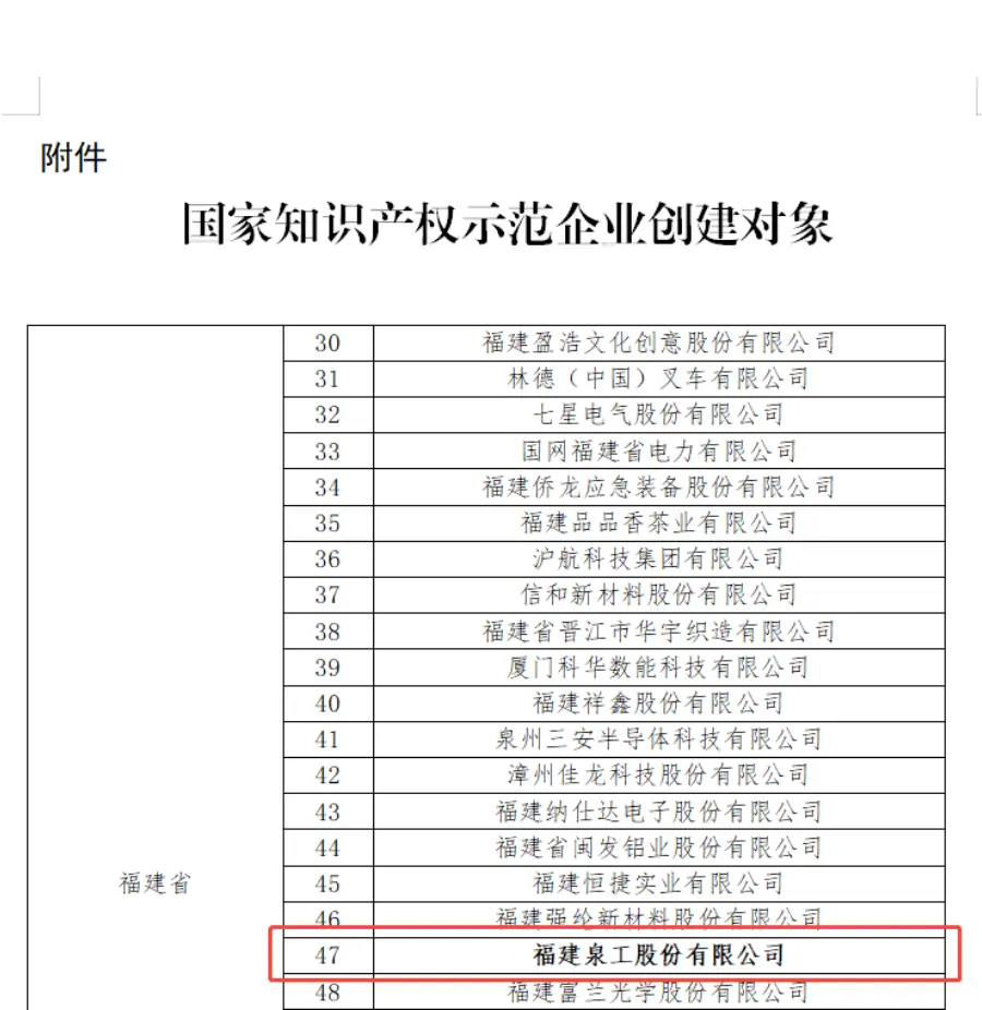 National Intellectual Property Demonstration Enterprises များဖန်တီးခြင်းသည် CNIPA မှ စတင်လုပ်ဆောင်သည့် အရေးကြီးသော သရုပ်ပြမှုနှင့် ဦးဆောင်ပရောဂျက်တစ်ခုဖြစ်ပြီး ထူးထူးခြားခြားဆန်းသစ်တီထွင်နိုင်စွမ်းရှိသော လုပ်ငန်းများ၊ စံပြုအသိဉာဏ်ပစ္စည်းဆိုင်ရာ စီမံခန့်ခွဲမှုနှင့် နည်းပညာလွှဲပြောင်းမှုတွင် သိသာထင်ရှားသော အောင်မြင်မှုများရှိသည့် လုပ်ငန်းများကို အာရုံစိုက်ထားသည်။ ရွေးချယ်ထားသော လုပ်ငန်းများသည် ၎င်းတို့၏ သက်ဆိုင်ရာစက်မှုလုပ်ငန်းများတွင် ဆန်းသစ်တီထွင်မှုစံနှုန်းများကို ကိုယ်စားပြုရုံသာမက ထပ်တူပွားနိုင်သော အရွယ်တင်နိုင်သော ဉာဏပစ္စည်းဆိုင်ရာ စီမံခန့်ခွဲမှုအတွေ့အကြုံများကို ရှာဖွေဖော်ထုတ်ရန် အရေးကြီးသော တာဝန်ကိုလည်း ထမ်းဆောင်ပါသည်။ Quangong Machinery Co., Ltd. ၏ ရွေးချယ်မှုသည် စဉ်ဆက်မပြတ် ဆန်းသစ်တီထွင်မှုနှင့် စံချိန်စံညွှန်းမီသော ဉာဏပစ္စည်းဆိုင်ရာ ပိုင်ဆိုင်မှုဆိုင်ရာ လုပ်ငန်းများတွင် ၎င်း၏ထိပ်တန်းရာထူးကို အပြည့်အဝ သက်သေပြနေပါသည်။