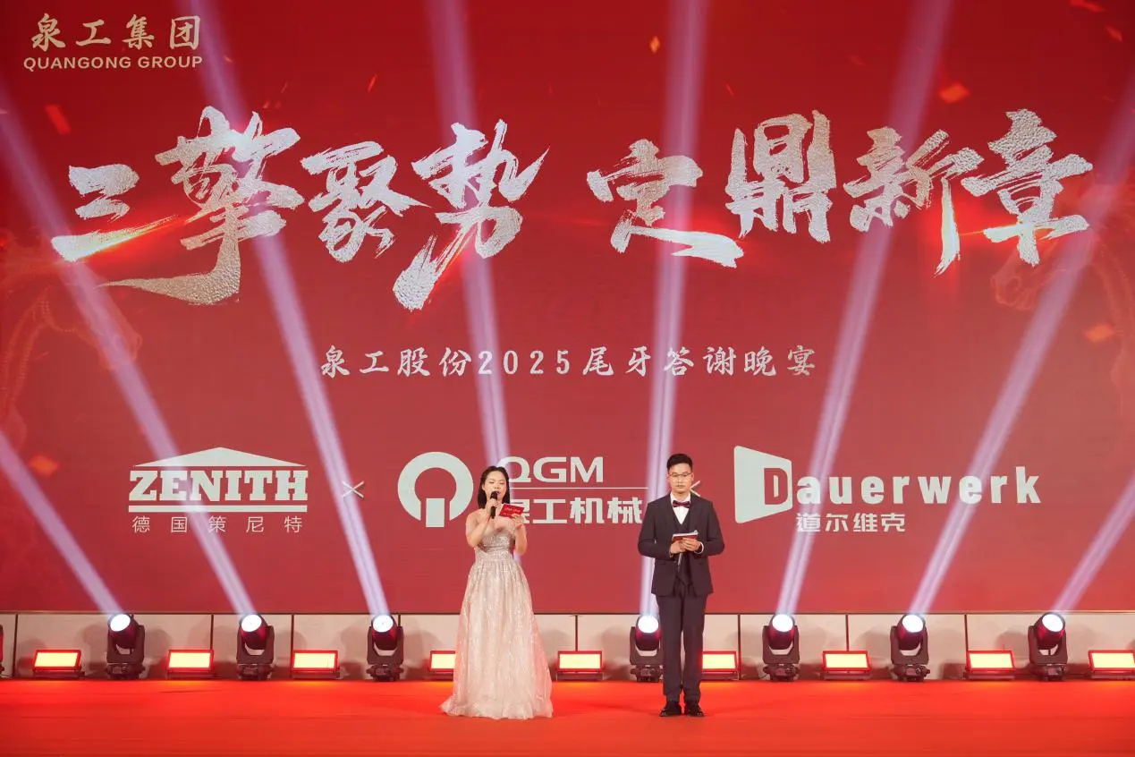ဖေဖော်ဝါရီ ၃ ရက် မွန်းလွဲပိုင်းကFujian Quangong Machinery Co., Ltd.2025 ခုနှစ် နှစ်ပတ်လည် အကျဉ်းချုပ်နှင့် ဆုပေးပွဲ အခမ်းအနားနှင့် နှစ်သစ်ကူး အခမ်းအနားအား Quanzhou Donghai Honor Hotel တွင် "အင်ဂျင်သုံးလုံး ပေါင်းစည်းခြင်း၊ အခန်းသစ်တစ်ခု သတ်မှတ်ခြင်း" ခေါင်းစဉ်ဖြင့် ကျင်းပခဲ့သည်။ ကုမ္ပဏီခေါင်းဆောင်များ၊ အဓိကဖောက်သည်ကိုယ်စားလှယ်များ၊ ဝန်ထမ်းများအားလုံးနှင့် ၎င်းတို့၏မိသားစုများသည် အလုပ်ကြိုးစားမှုခရီးကို ပြန်လည်သုံးသပ်ရန်၊ ဖွံ့ဖြိုးတိုးတက်မှုအောင်မြင်မှုများကို မျှဝေရန်နှင့် တောက်ပသောအနာဂတ်ကို မျှော်လင့်ရန် အတူတကွစုရုံးခဲ့ကြသည်။